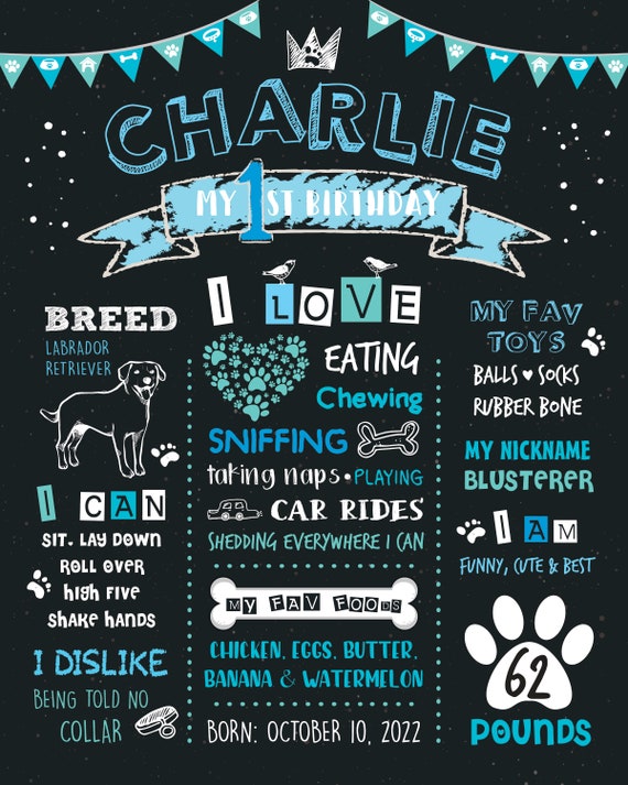 Dog First Birthday Poster Dog Birthday Board Puppy 1st Etsy Canada
